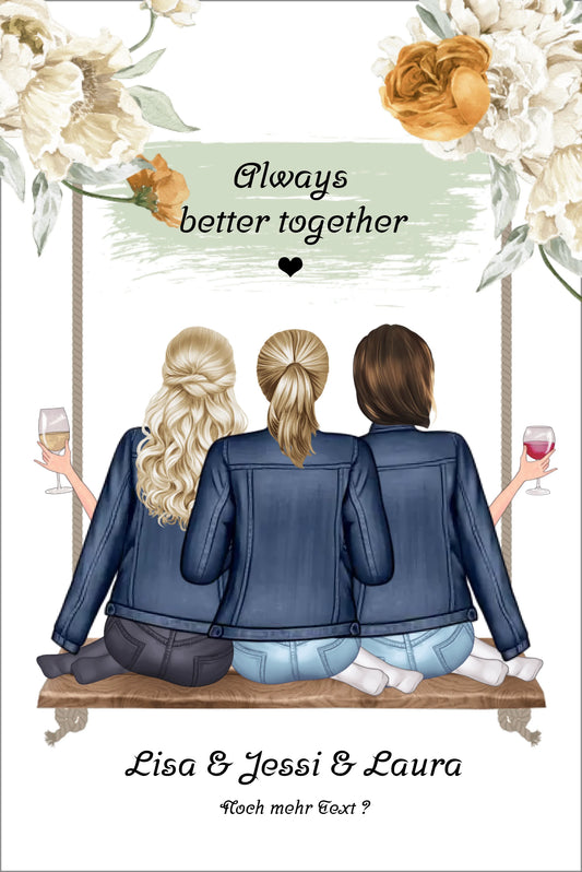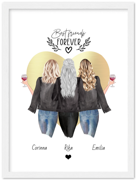 3 beste Freundinnen Poster personalisiert - Geschenk Geburtstag, Weihnachten, Freundschaft