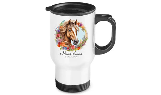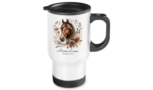 Einschulung Geschenk Schulkind Edelstahl Kinderbecher Pferd mit Name | Geschenk Einschulung & Geburtstag | Edelstahl-Thermobecher für Kinder personalisiert