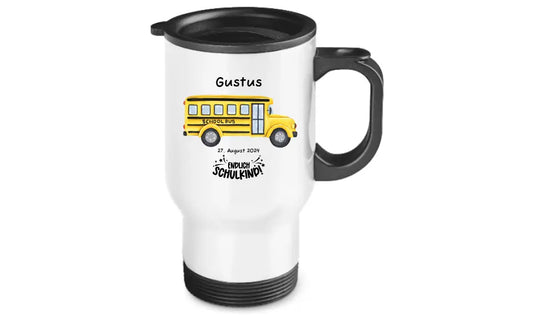 Einschulung Geschenk Schulkind Schulbus Edelstahl Kinderbecher mit Name | Geschenk Einschulung & Geburtstag | Edelstahl-Thermobecher