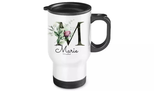 Personalisierter Becher aus Edelstahl mit Buchstabe / Monogramm, Namen und Text