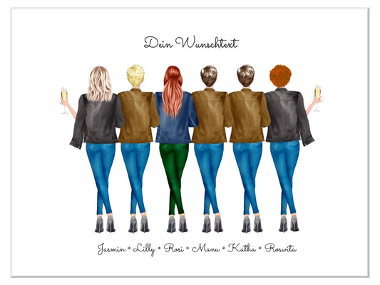 Personalisiertes 6 beste Freundinnen Poster Geschenk - Freundinnen Bild Geburtstagsgeschenk