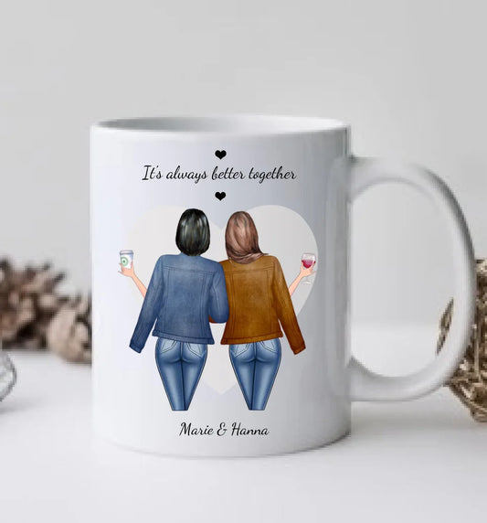 2 Freundinnen Tasse Geschenk personalisiert - Persönliche Tasse Geburtstagsgeschenk
