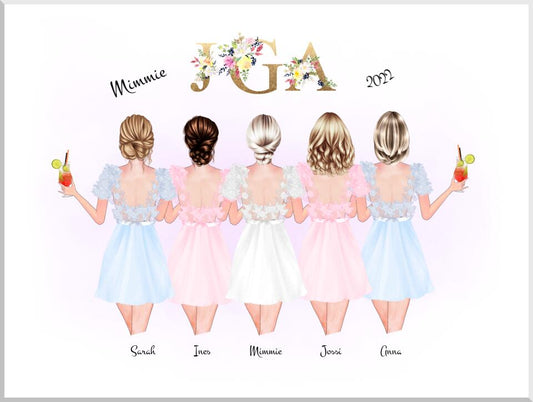 Personalisiertes Geschenk Junggesellinnenabschied Poster, Freundinnen Bild persönlich & individuell gestalten, JGA Braut, Brautjungfern