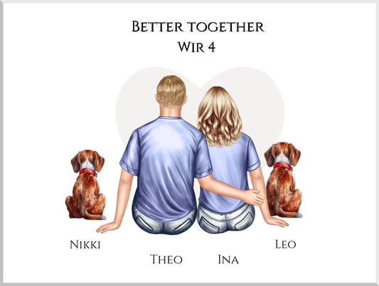 Personalisiertes Geschenk Hundebesitzer - Paar mit 2 Hunden Poster - Geburtstagsgeschenk Weihnachtsgeschenk