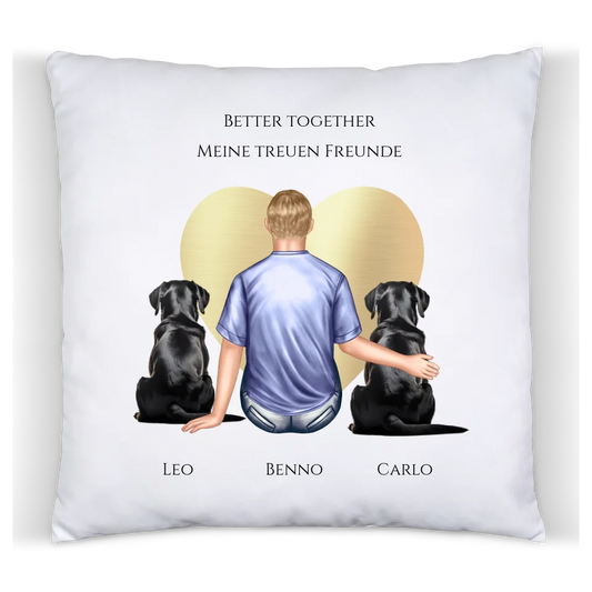 Personalisiertes Geschenk Mann/ Freund mit 2 Hunden Deko Kissen - Geburtstagsgeschenk personalisiert Geschenk Hundebesitzer Weihnachtsgeschenk