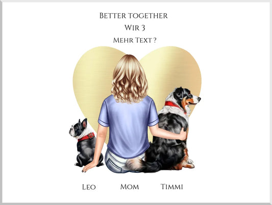 Personalisiertes Geschenk Mädchen / Frau mit 2 Hunden Poster - Geburtstagsgeschenk personalisiert Geschenk Hundebesitzerin Weihnachtsgeschenk