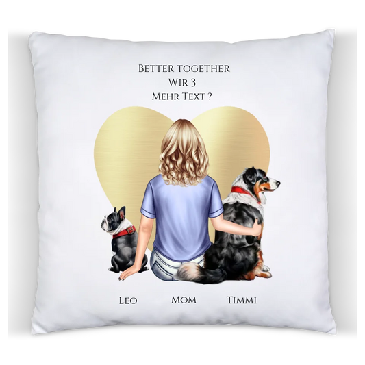 Personalisiertes Geschenk Hundebesitzerin für Mädchen, Freundin, Frau mit 2 Hunden- Deko Kissen Geburtstagsgeschenk Weihnachtsgeschenk