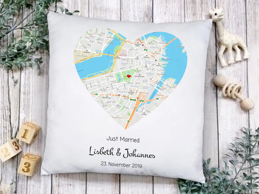 Personalisiertes Kissen im MAP-Style als Hochzeitsgeschenk, Geschenk Partner, Geschenk Partnerin, Geschenk Valentin, Hochzeitstag, Geburtstagsgeschenk