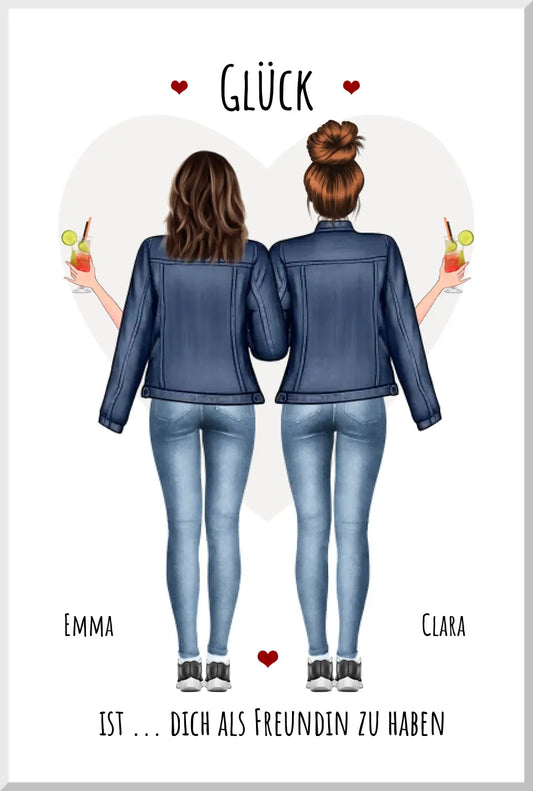 2 Freundinnen Bild | Poster beste Freundin Geschenk personalisiert für Schwester, Mama, Kollegin
