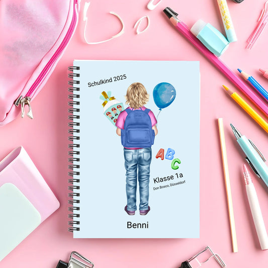 Personalisierter Collegeblock / Notizblock für Kinder Junge - Hausaufgabenheft - Schulbeginn - Geschenk Einschulung