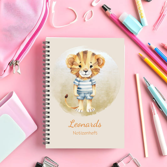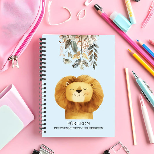 Personalisierter Collegeblock für Kinder- Kleiner Löwe - Hausaufgabenheft - Schulbeginn - Einschulungsgeschenk