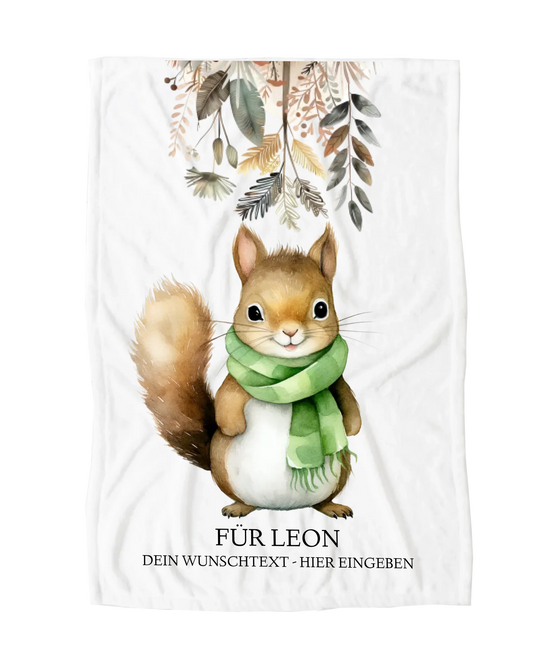 Personalisiertes Kinderdecke Eichhörnchen mit Namen - Kuscheldecke