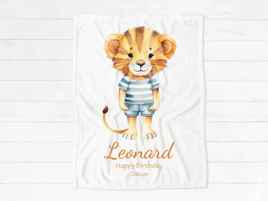 Personalisierte Kinderdecke kleiner Löwe - Kinderzimmereinrichtung - Einschulung