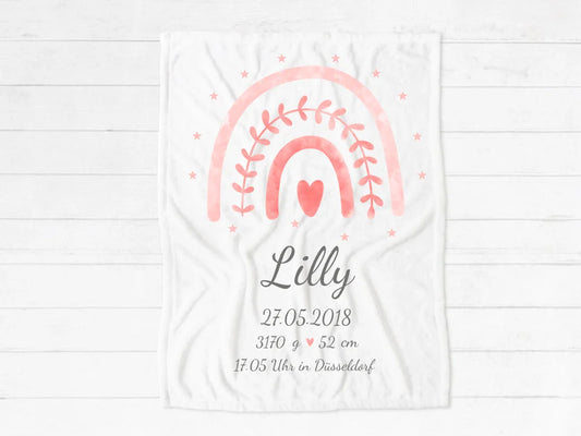 Kuscheliges Geburtsgeschenk Babydecke personalisiert, Geschenk zur Geburt, zur Taufe, Taufgeschenk, Fleecedecke mit Regenbogen