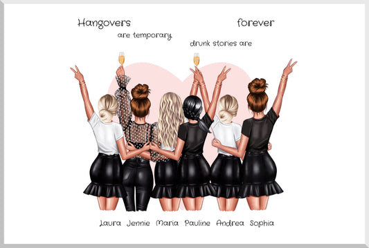 4 beste Freundinnen Geschenk "hangovers" Personalisiertes Poster für 4 Frauen