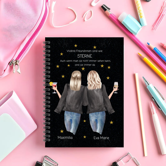 Personalisiertes Geburtstagsgeschenk 2 beste Freundinnen - Collageblock - Wahre Freunde sind wie Sterne