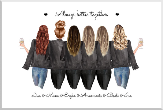 6 beste Freundinnen Bild | Poster Geschenk personalisiert mit Spruch | Geburtstagsgeschenk Freundin, Schwester, Kollegin