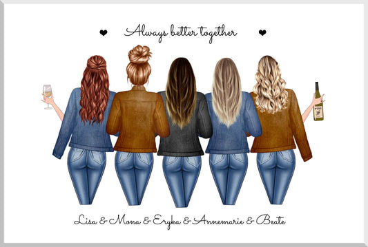 5 beste Freundinnen Poster personalisiertes Geschenk mit Spruch, Geburtstagsgeschenk Bild