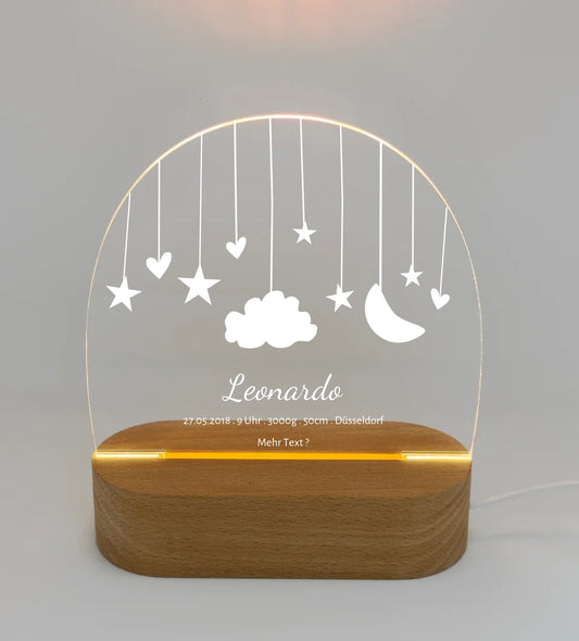 Personalisiertes Baby LED Nachtlicht "Mond & Sterne" | Geburtsgeschenk & Taufgeschenk