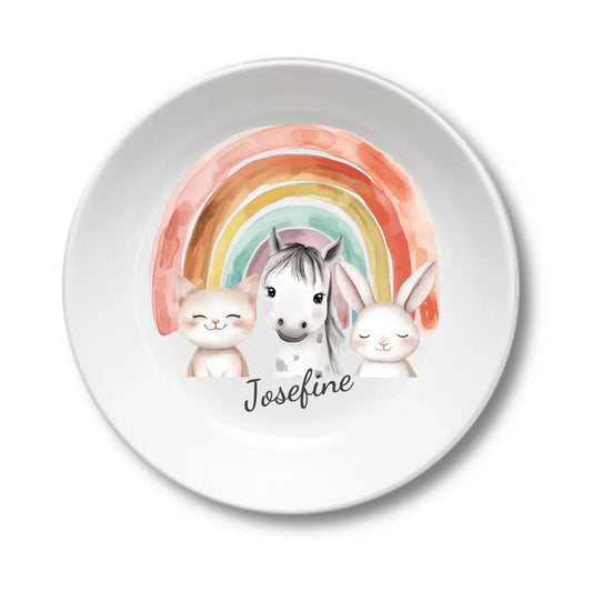 Kinderteller Regenbogen mit Namen & Farmtieren personalisiert, Kindergeschirr Geschenk zur Taufe, Geburt, Geburtstag und Weihnachten 2