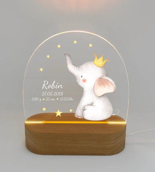 Personalisiertes Baby & Kinder LED Nachtlicht Elefant mit Geburtsdaten Geburtsgeschenk & Taufgeschenk Junge