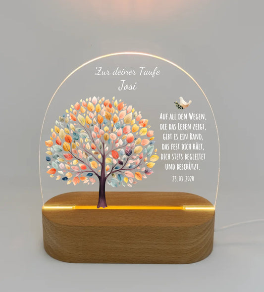 Zur Taufe - Taufgeschenk & Geburtsgeschenk Lebensbaum mit Name und Spruch - Personalisiertes LED Nachtlicht für Babys & Kinder