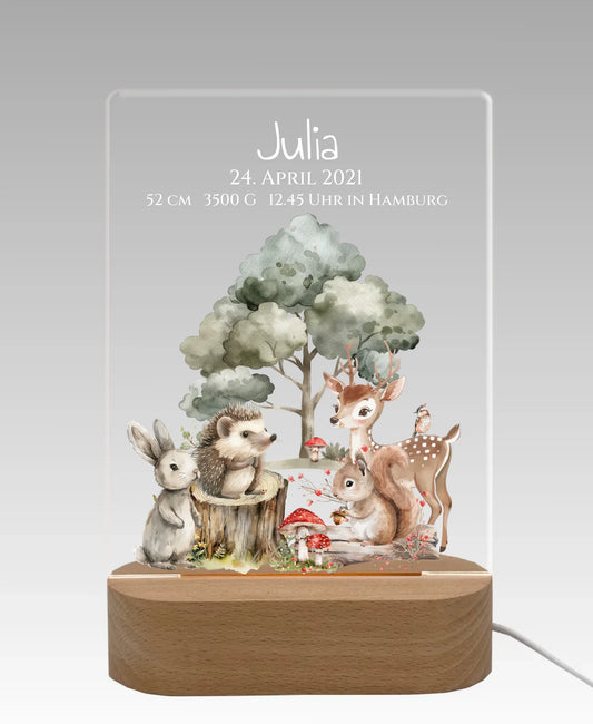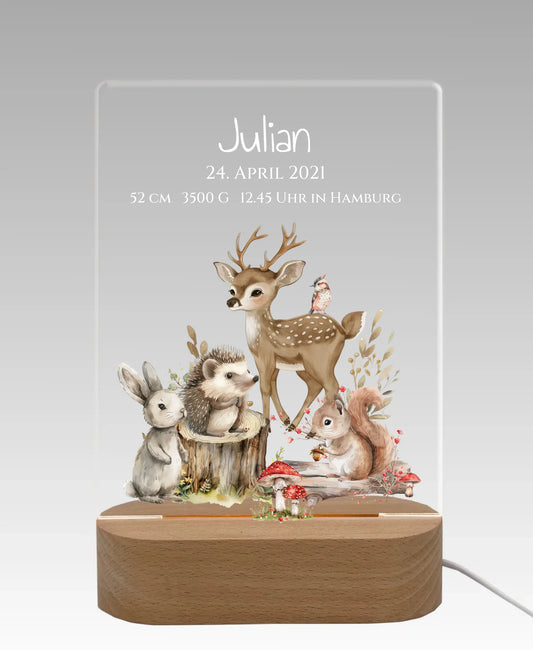 Personalisiertes LED Nachtlicht Waldtiere für Babys zur Gebut & Taufe - Kinderzimmer Deko