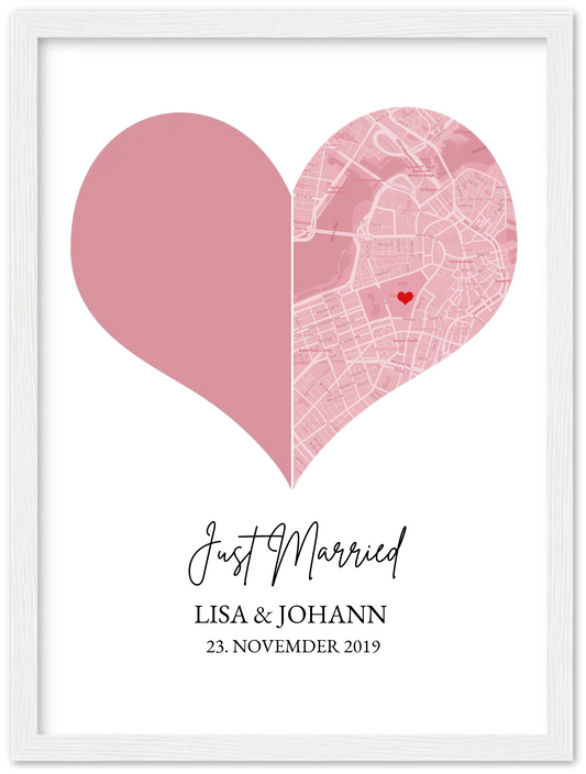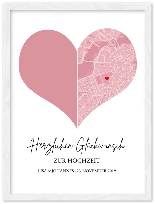 Hochzeitsgeschenk | Gerahmtes Koordinaten Poster Herz im Stadtkarte Design | Geschenkidee Hochzeit -Valentinstaggeschenk | Geburtstagsgeschenk