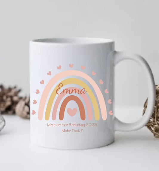 Kindertasse Regenbogentasse mit Wunschtext & Namen - Personalisierte Tasse Geschenk, Einschulungsgeschenk, Geburtstagsgeschenk