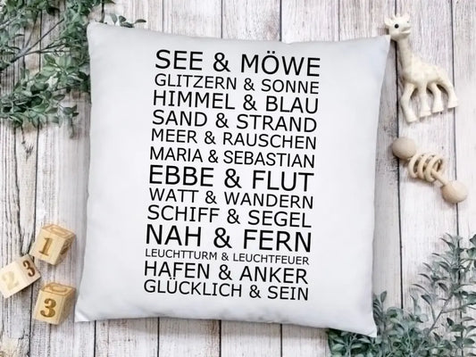 Personalisiertes Geschenk Sprüche Kissen SEEMÖWE Hochzeitsgeschenk Geschenk mit Namen - Zeitraum-Kunstdrucke - Geburtstagsgeschenk, Weihnachtsgeschenk
