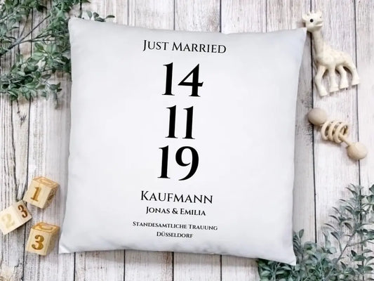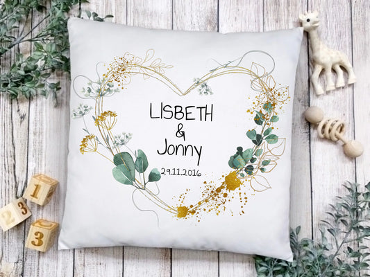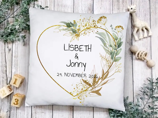 Hochzeitsgeschenk | Valentinstag-Geschenk | personalisiertes Hochzeitskissen für das Brautpaar mit Namen und Datum | Geschenk zur Hochzeit, Jahrestag, Valentin | Zeitraum-Kunstdrucke