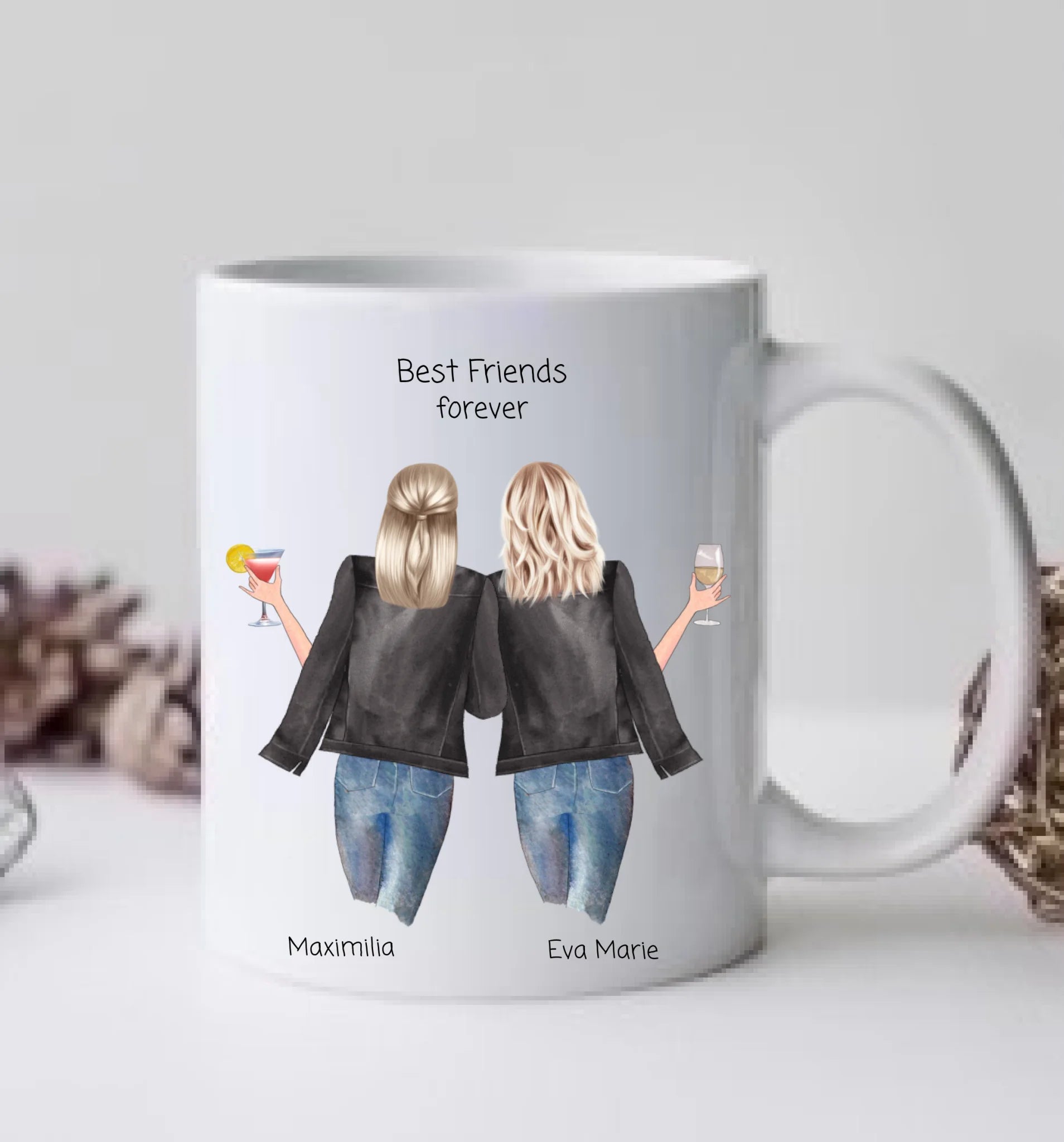 2 Beste Freundinnen Tasse personalisiert - Beste Freundin Geburtstagsgeschenk
