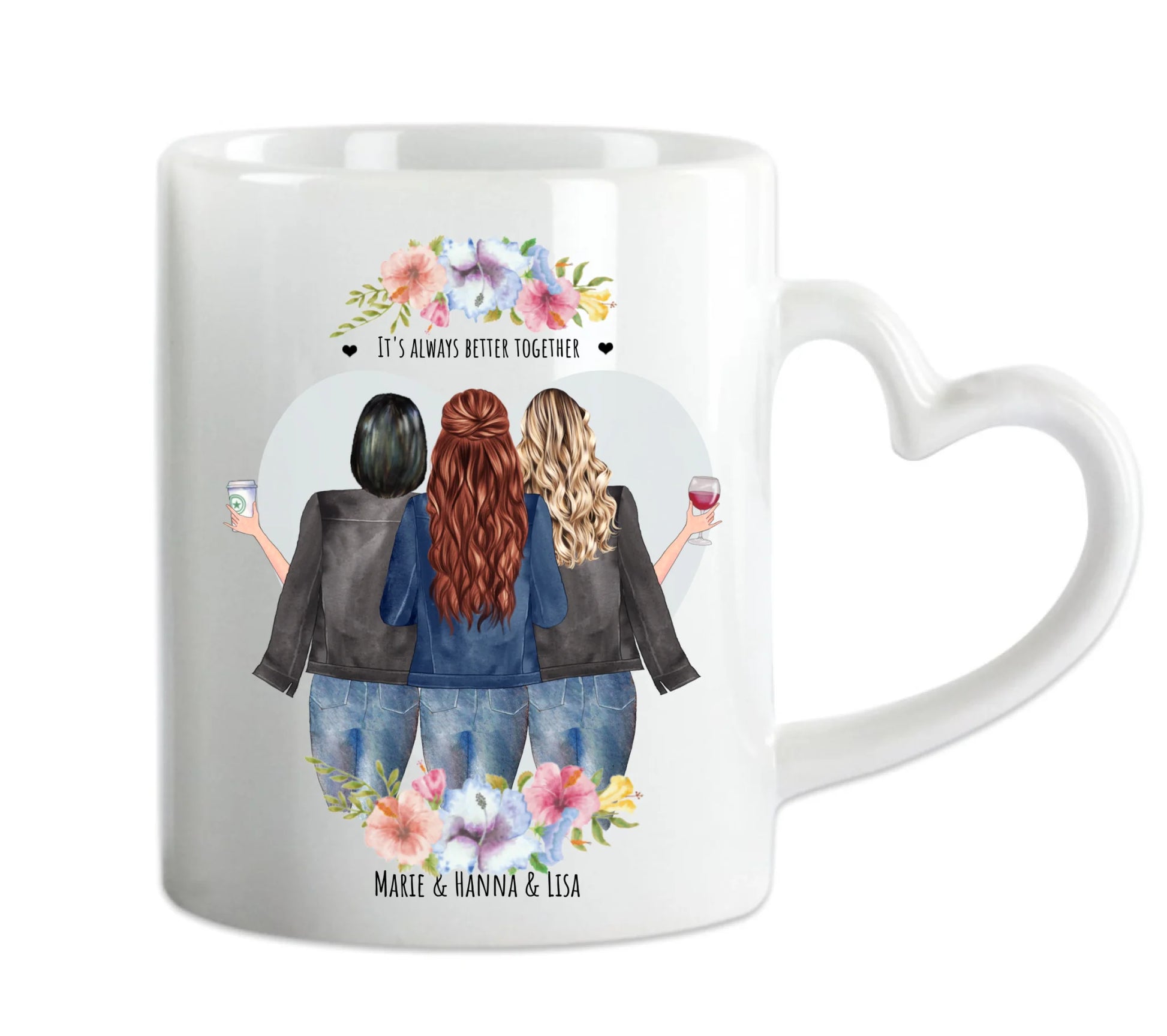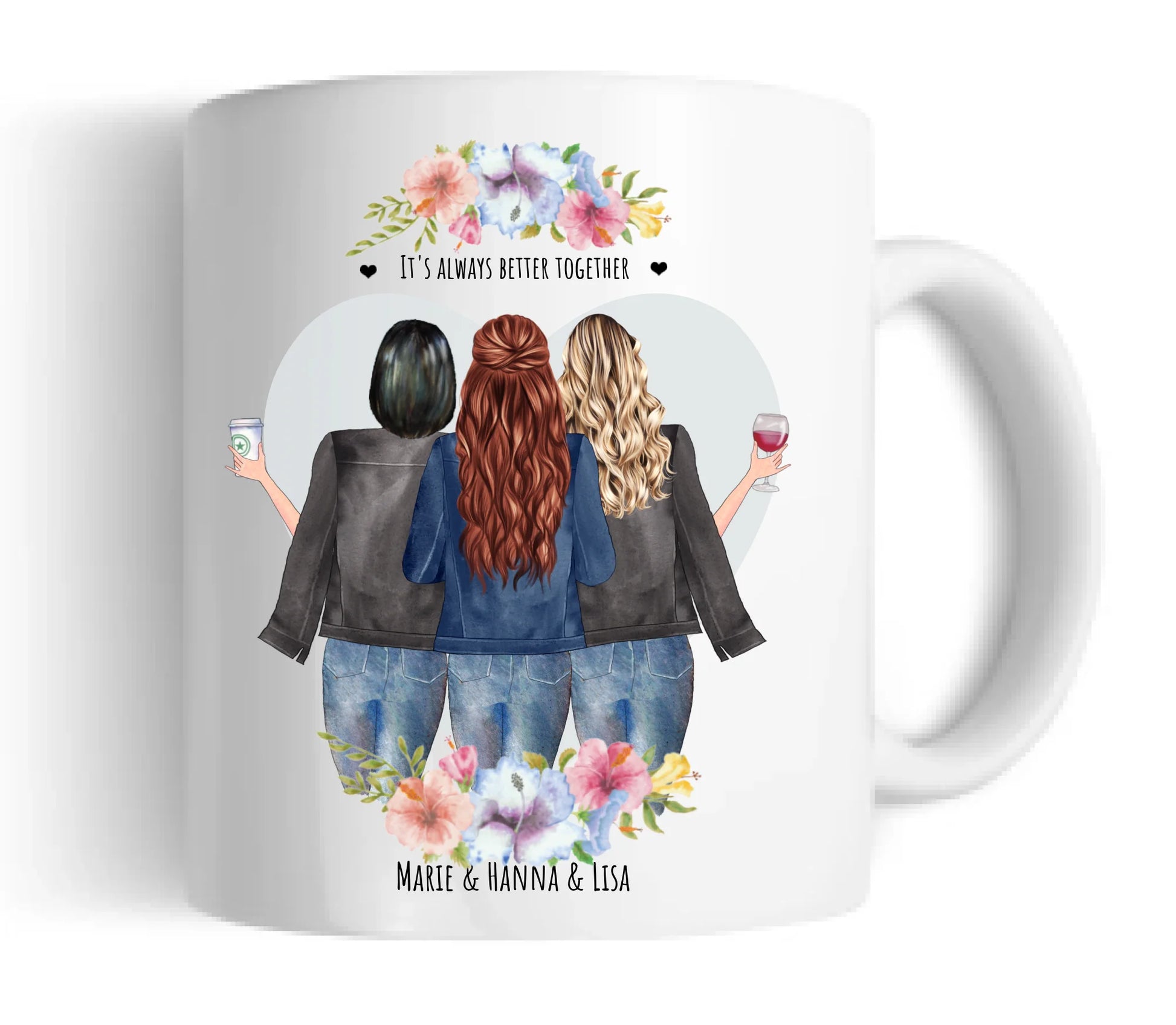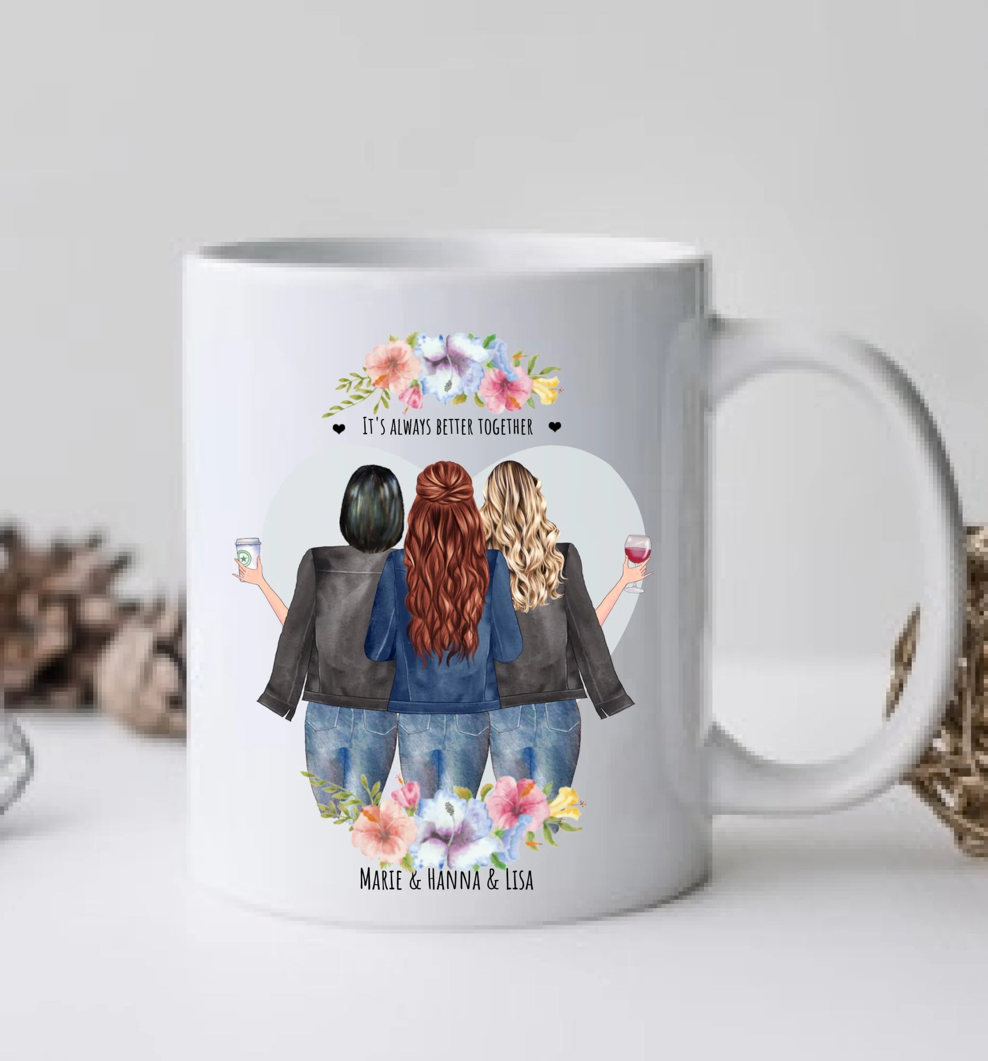 3 Beste Freundinnen Tasse personalisiert - Beste Freundin Geburtstagsgeschenk