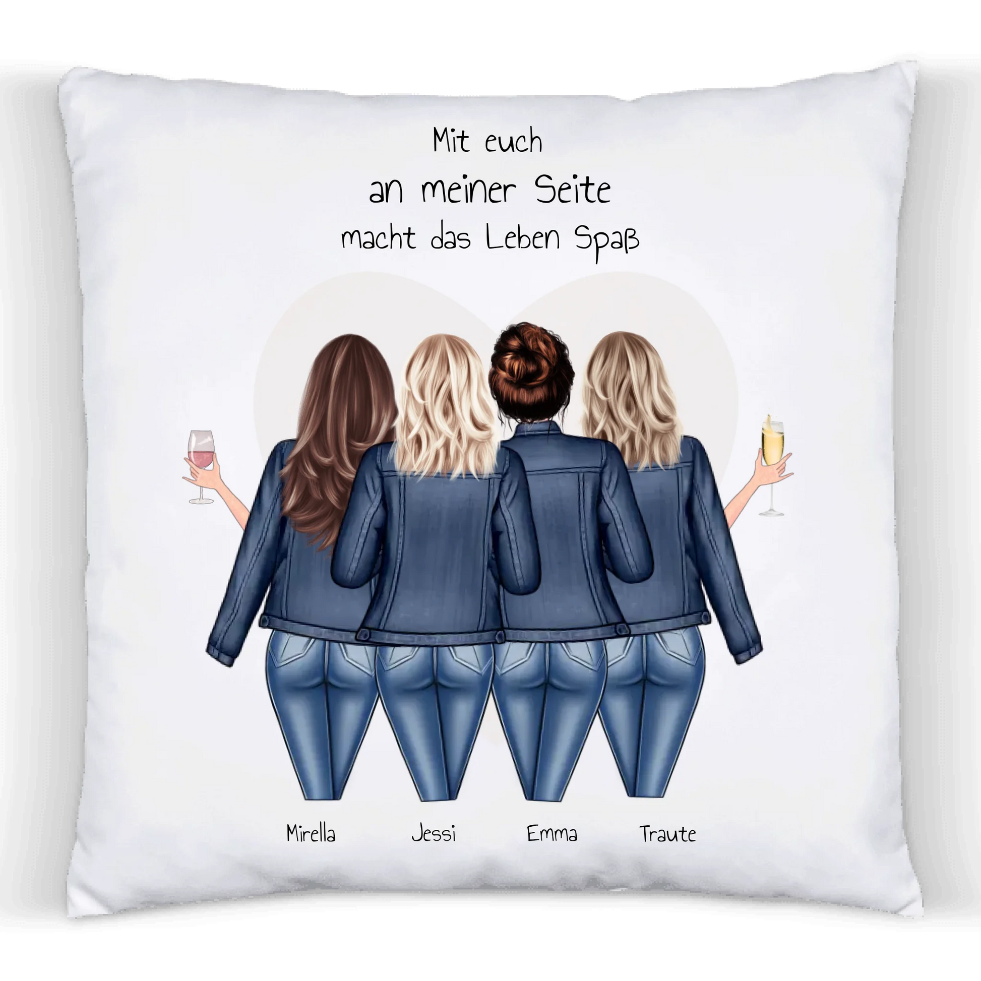 Geschenk beste Freundin mit 4 Freundinnen - Geburtstagsgeschenk Kissen - Personalisiertes Kissen mit Spruch