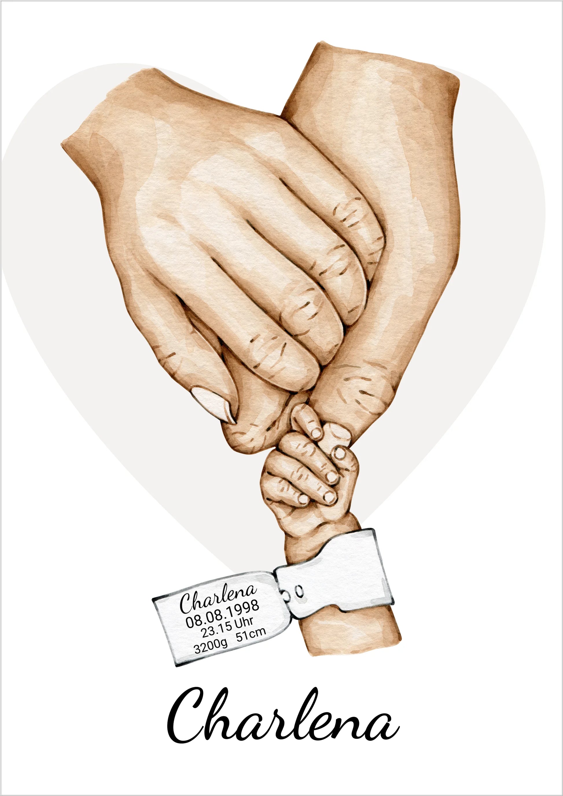 Geburtsanzeige Baby mit Namen und Datum | Personalisiertes Geschenk zur Geburt | Taufgeschenk | Geschenk Geburt mit Hände Motiv