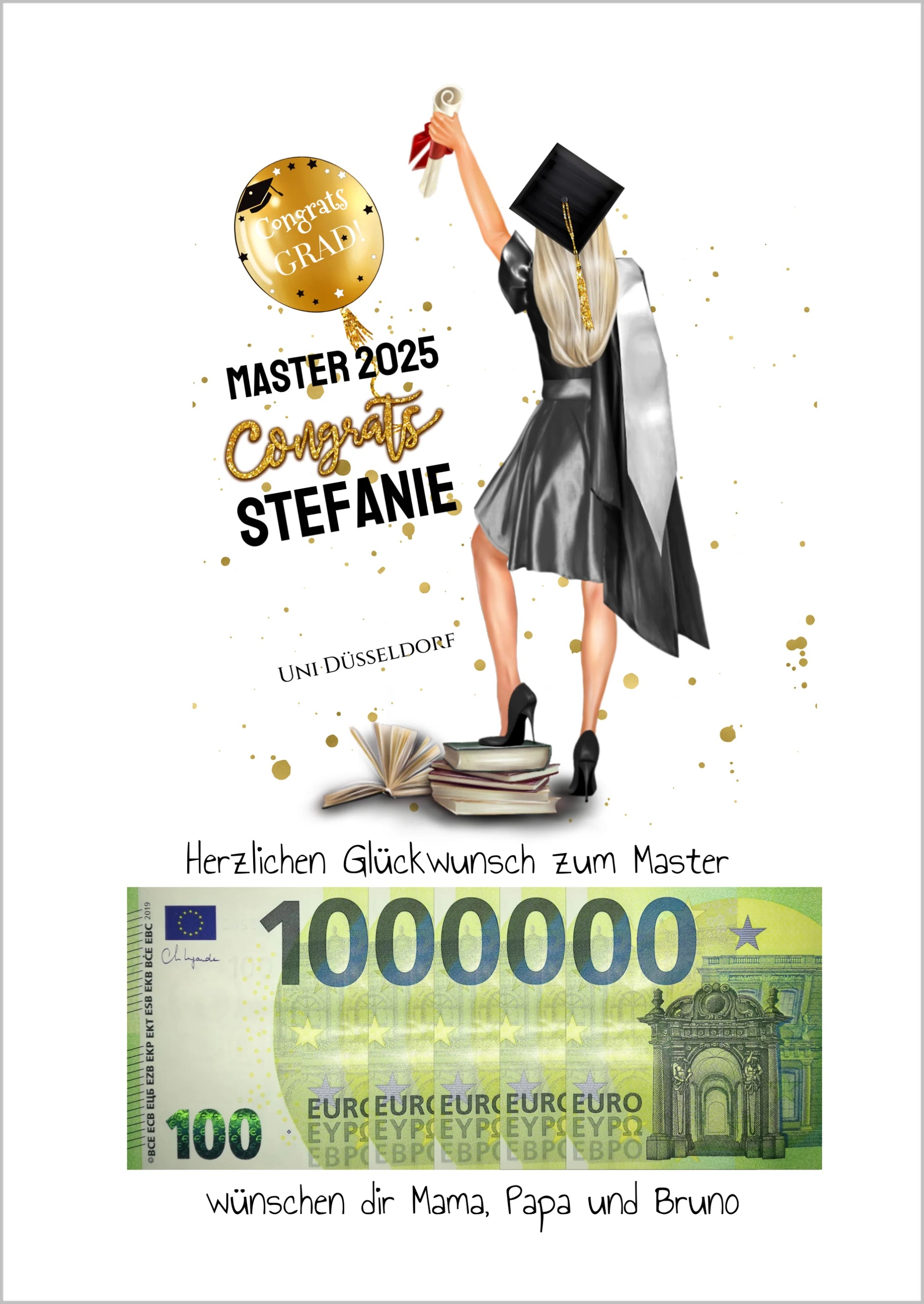 Geldgeschenk Wunscherfüller - Personalisiertes Abschlußgeschenk zum Abi, Bachelor, Master, Doktor - Frauen