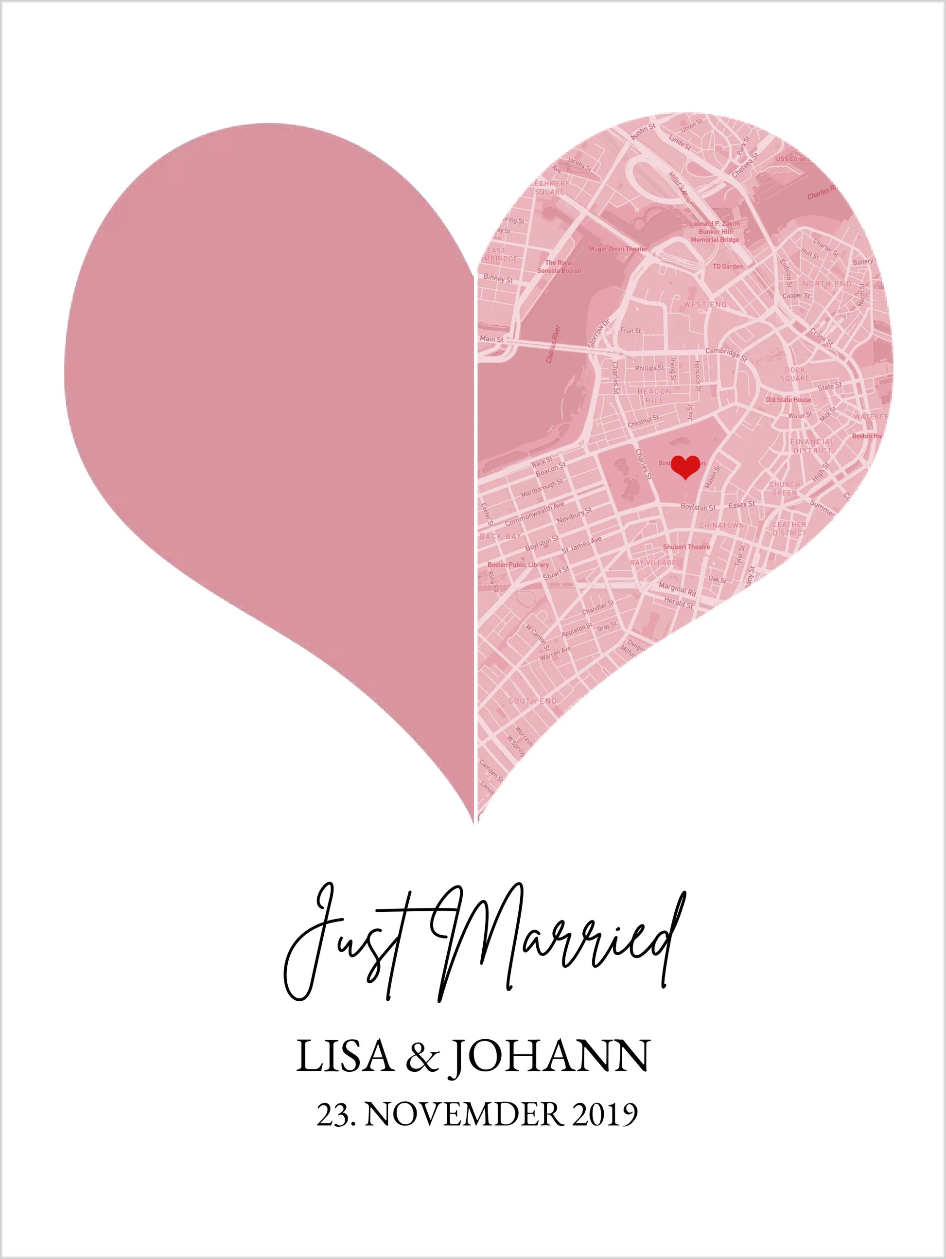 Just Married Hochzeitsposter Geschenk personalisiert | Geschenk zur Hochzeit mit Foto | Fotoposer Stadtkarte Bild