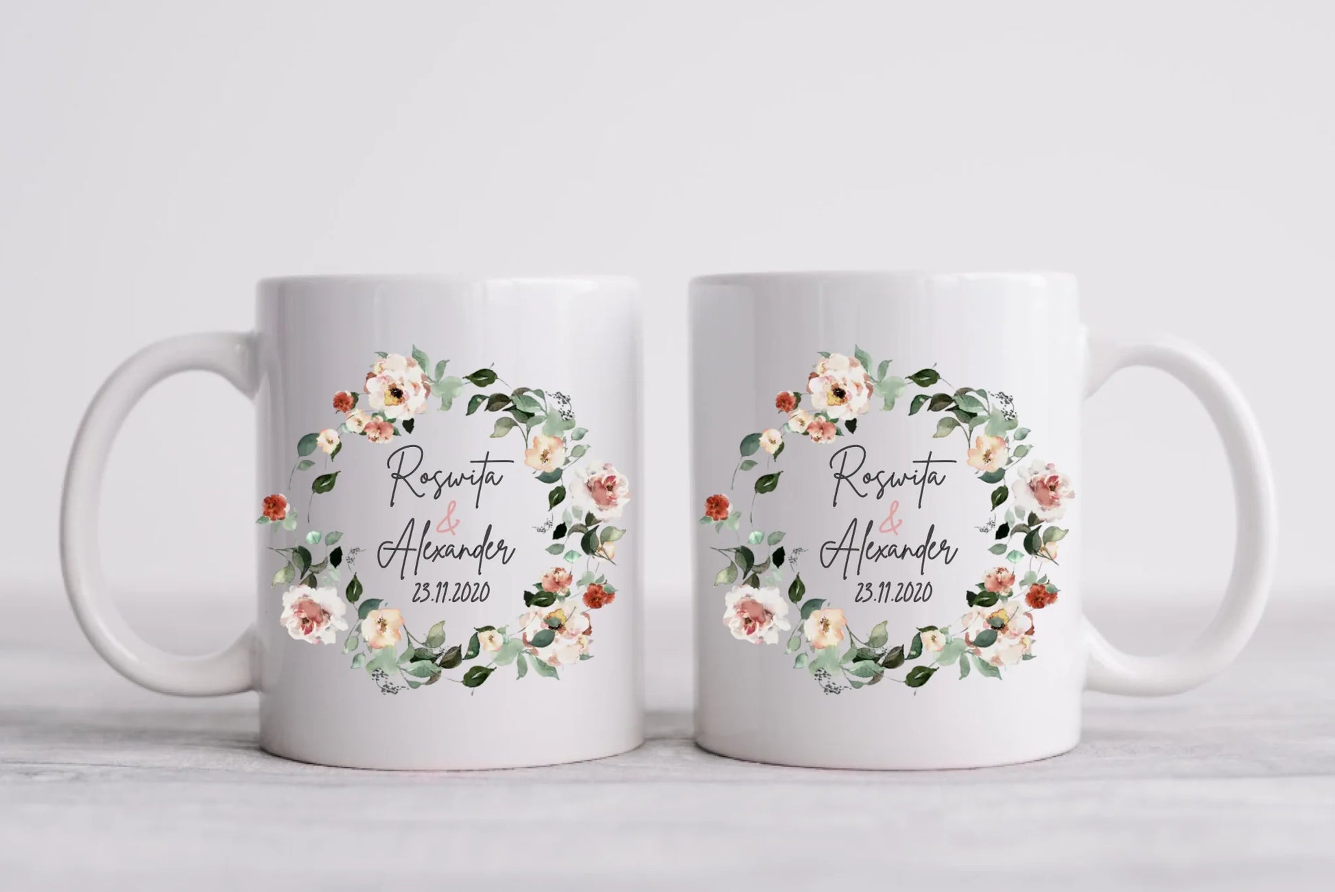Personalisierte Hochzeitsgeschenk Tasse Blumenkranz Brautpaar, Ehepaar - Geschenk Hochzeit
