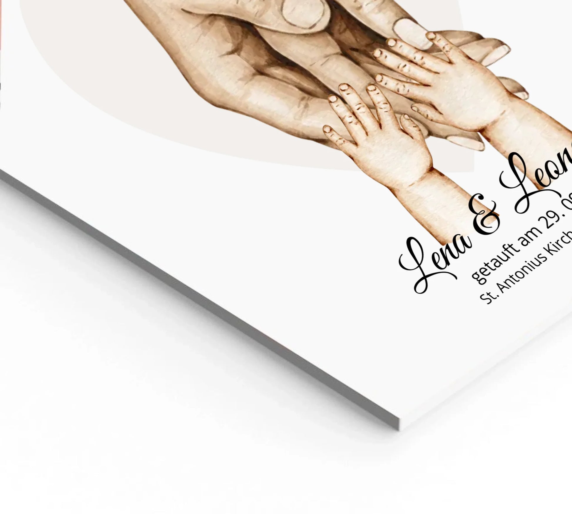 Personalisiertes Geschenk zur Taufer Hände | Bild Familie | Familienname | Namen Eltern | Kindername | personalisiertes Taufgeschenk