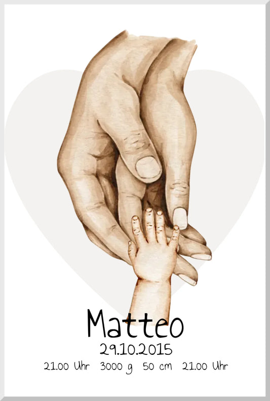 Händeposter als Geschenk zur Geburt & Taufe mit Namen und Geburtsdaten