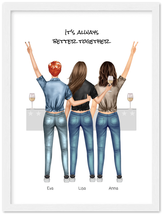 3 beste Freundinnen Poster personalisiert - Geschenk Geburtstag, Weihnachten, Freundschaft