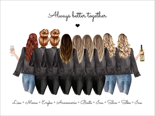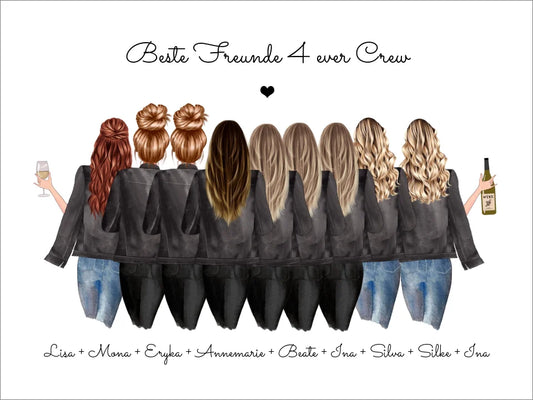 8 Freundinnen Bild individuell mit Namen Spruch personalisieren - Geburtstagsgeschenk Poster