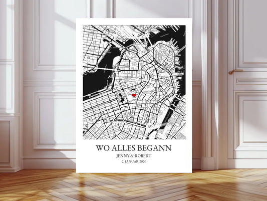 Wo alles begann Poster - Personalisiertes Hochzeitsgeschenk, Geschenk Hochzeitstag, Valetinstag Stadtkarte 2 - Digitale Datei