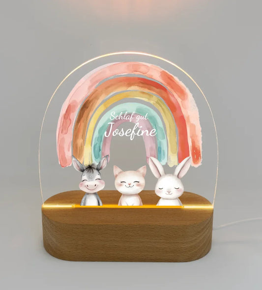 Personalisiertes Baby & Kinder LED Nachtlicht Einhörner / Bauernhof / Safari Tiere - Kinderzimmerdeko
