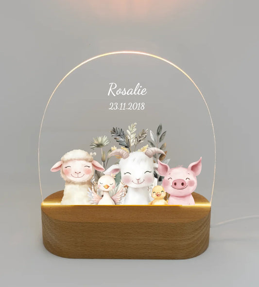 Personalisiertes Baby & Kinder LED Nachtlicht Bauernhof Tiere mit Namen / Text Geburtsgeschenk & Taufgeschenk