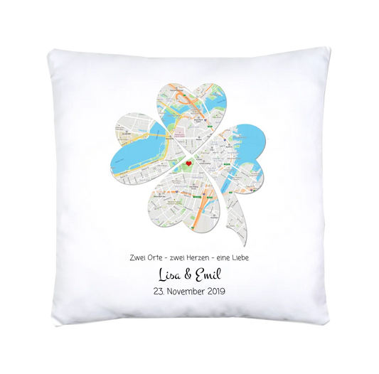 Hochzeitsgeschenk Just Married | Personalisierter Bettbezug Glücksklee Motiv | Geschenk zur Hochzeit, Valentin, Liebe im Koordinaten Stadtkarte Design