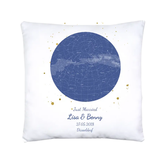 Hochzeitsgeschenk Just Married | Personalisierter Bettbezug Kreis | Geschenk zur Hochzeit, Valentin, Liebe im Sternkarte/Sternenhimmel Design