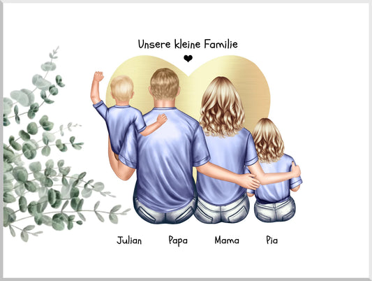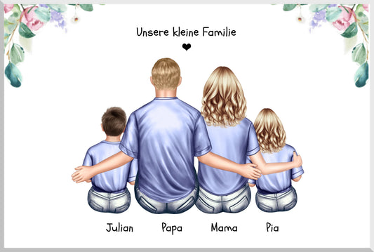 Gestalte dein Familienbild mit 1-4 Kindern direkt online mit Livevorschau, als Poster oder Leinwandbild mit deinen Familienmitgliedern.