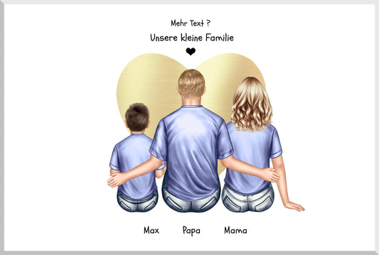 Geschenk Familie Poster, personalisiertes Familienbild mit Mama, Papa, 1 Kind perfekt als Weihnachtsgeschenk, Geburtstagsgeschenk