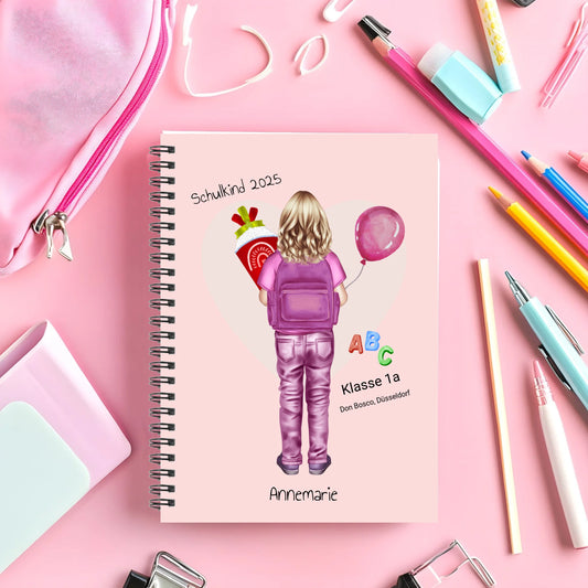 Personalisierter Collegeblock für Kinder - Hausaufgabenheft - Schulbeginn - Geschenk Einschulung